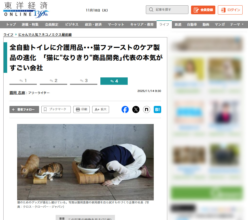 2025年11月14日 猫ケア用品の開発会社の“猫ファースト”な開発・販売現場についての記事にて、