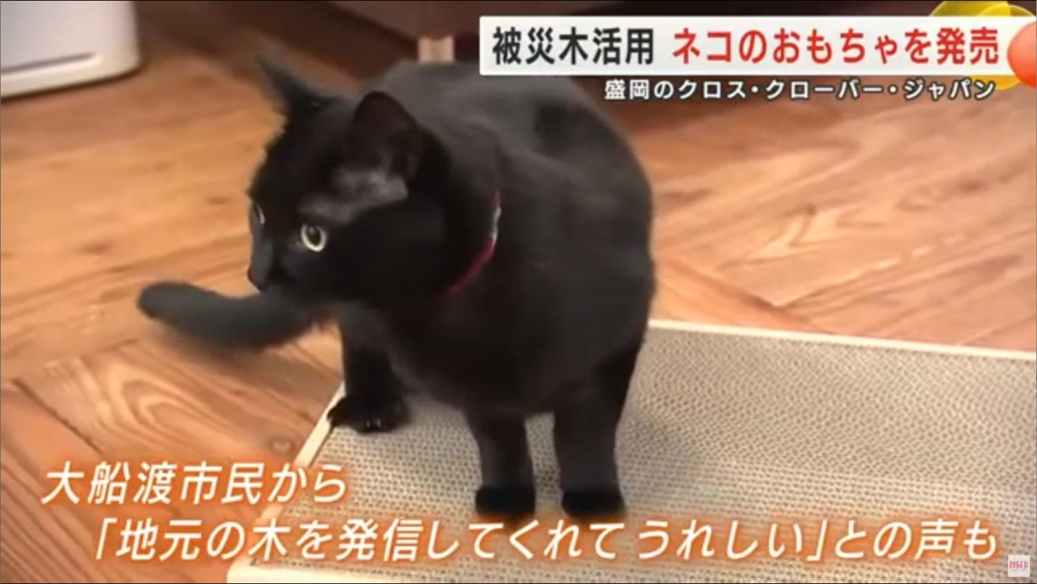 2025年12月19日 岩手めんこいテレビ ニュース番組 mit Live News にて弊社の商品 岩手 大船渡山林火災の被災木を活用した知育おもちゃの「ちょいちょいBOX」と爪とぎの「がりがりマット」が紹介されました。