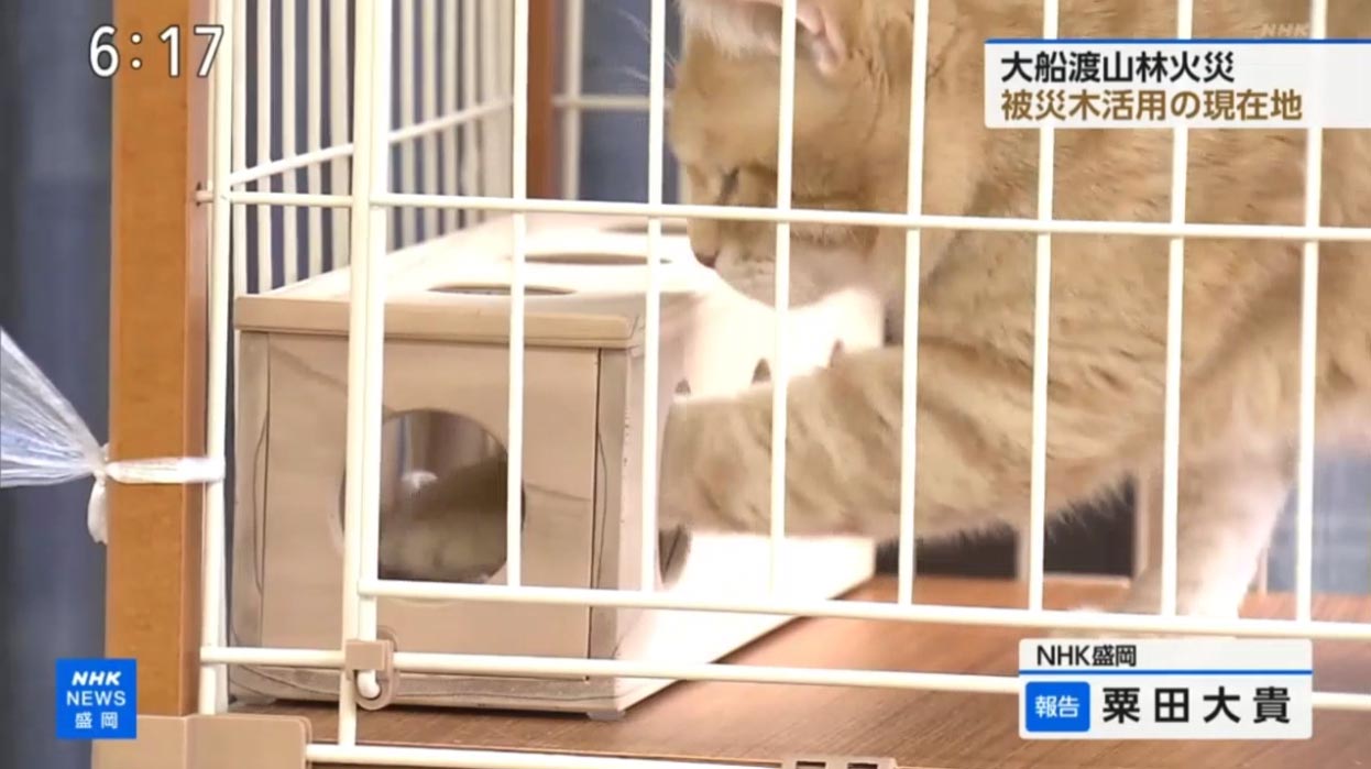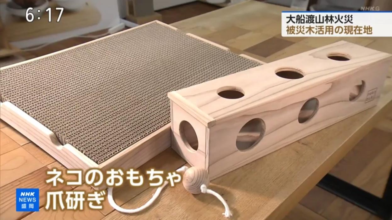 2026年1月15日 NHK盛岡 おばんですいわて にて弊社の商品 岩手 大船渡山林火災の被災木を活用した知育おもちゃの「ちょいちょいBOX」と爪とぎの「がりがりマット」が紹介されました。